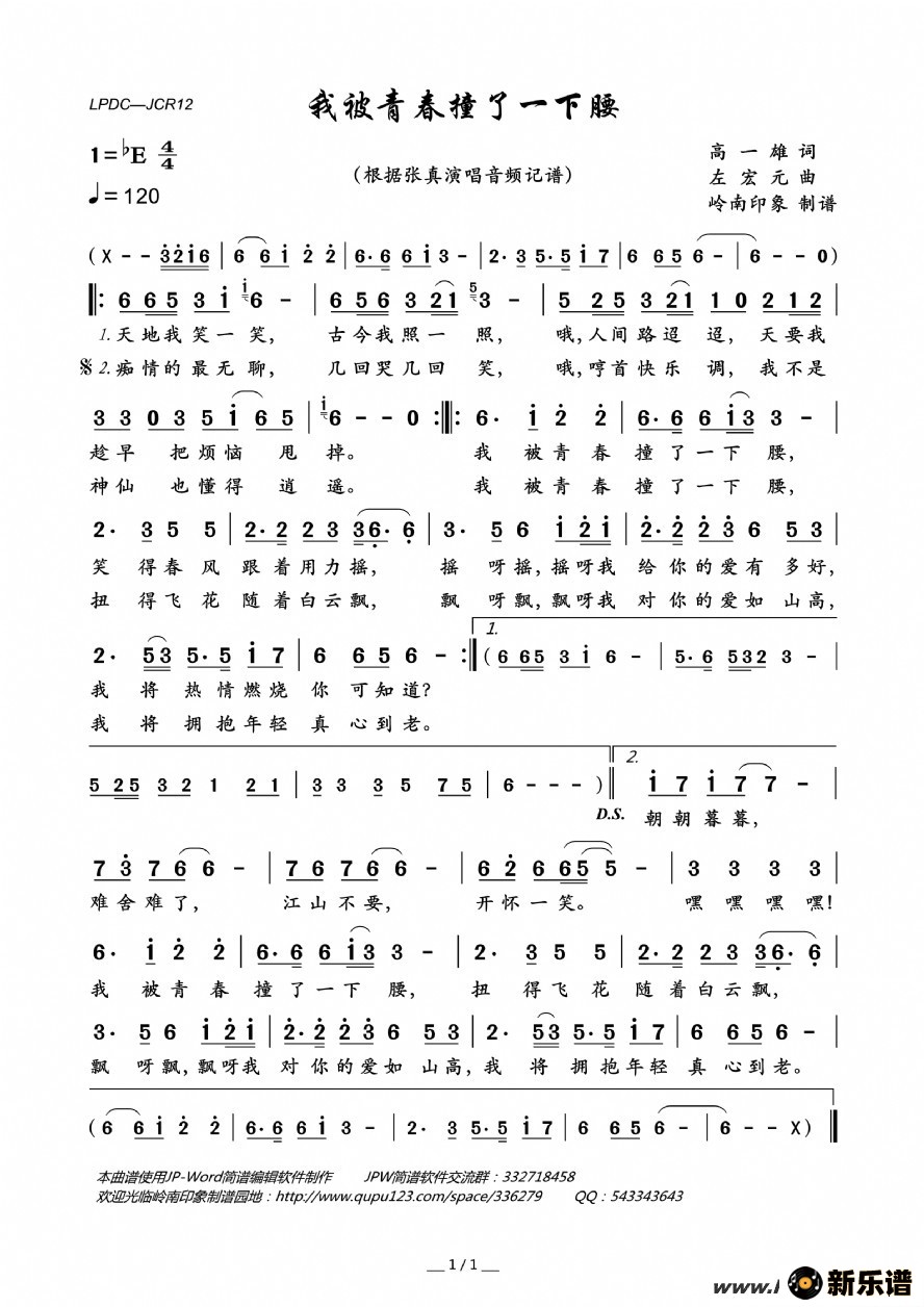 《我被青春撞了一下腰》简谱 张真-岭南印象制谱