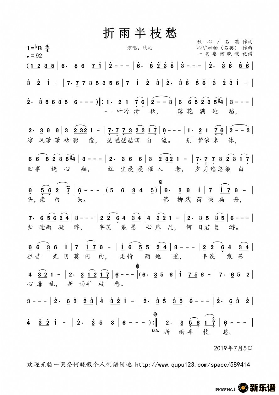 石英演唱的折雨半枝愁歌词,折雨半枝愁简谱.