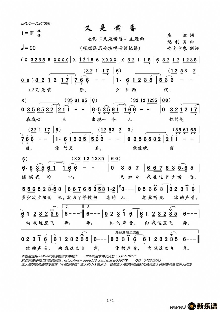 陈思安演唱的又是黄昏(电影《又是黄昏》主题曲)歌词,又是黄昏(电影《又是黄昏》主题曲)简谱.