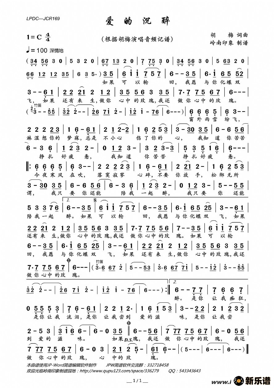 《爱的沉醉》简谱 胡梅-岭南印象制谱