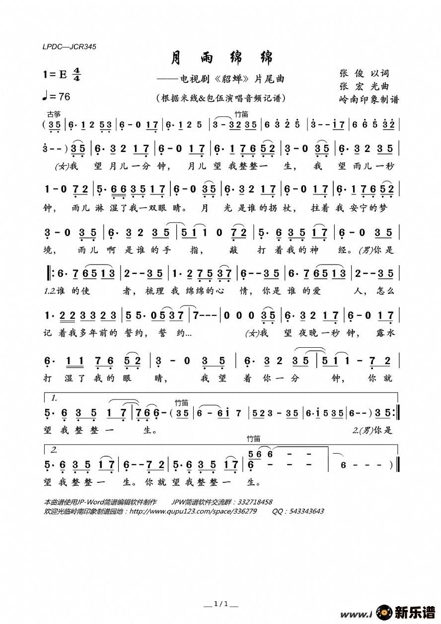 《月雨绵绵(电视剧《貂蝉》片尾曲)》简谱 米线/包伍-岭南印象制谱