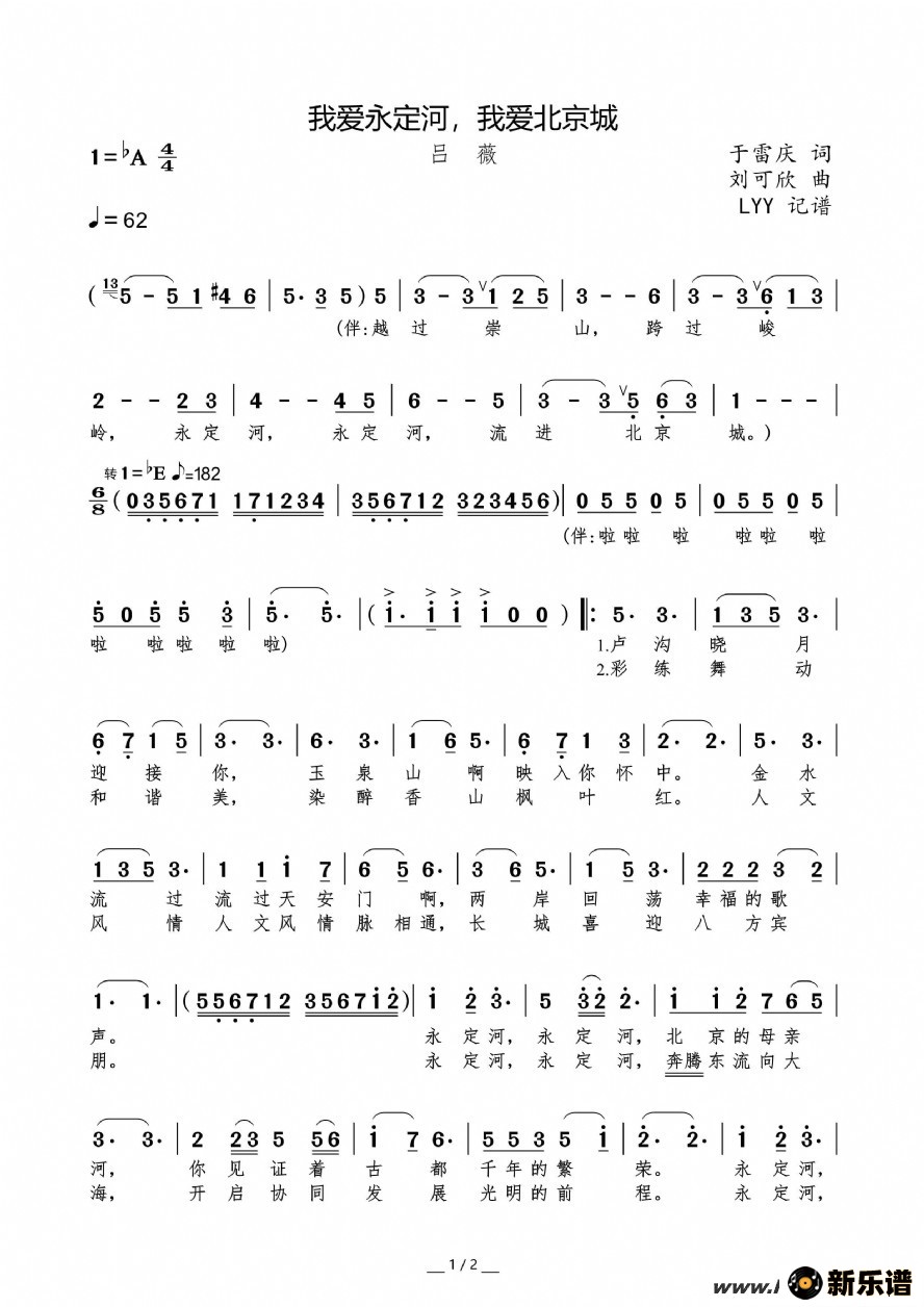 吕薇演唱的我爱永定河,我爱北京城歌词,我爱永定河,我爱北京城简谱.