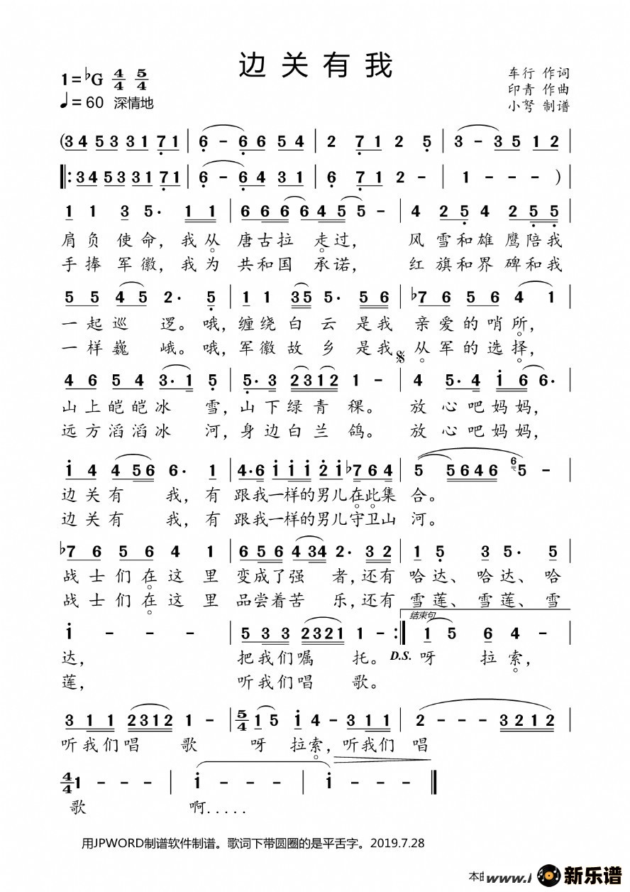 降央卓玛演唱的边关有我歌词,边关有我简谱.