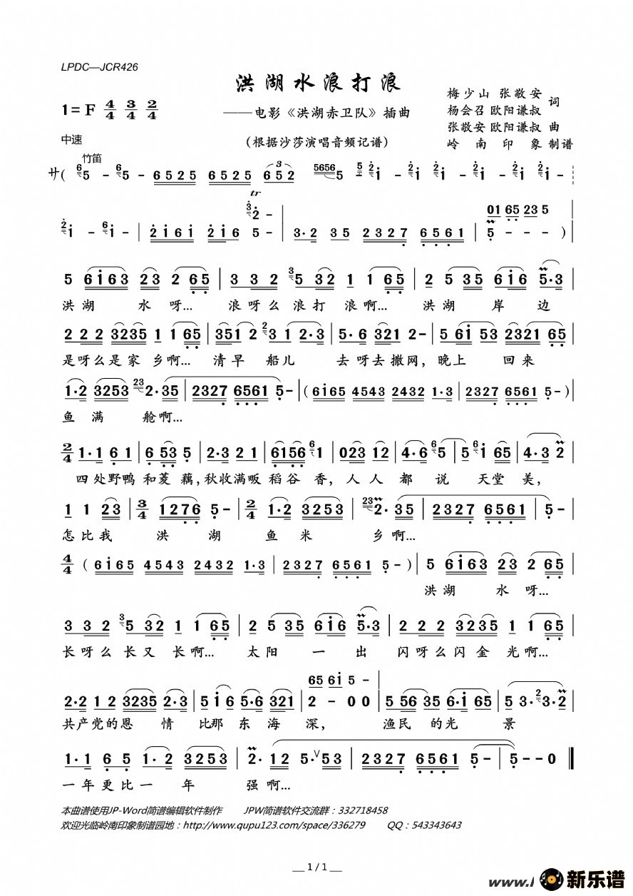《洪湖水浪打浪》简谱 沙莎-岭南印象制谱
