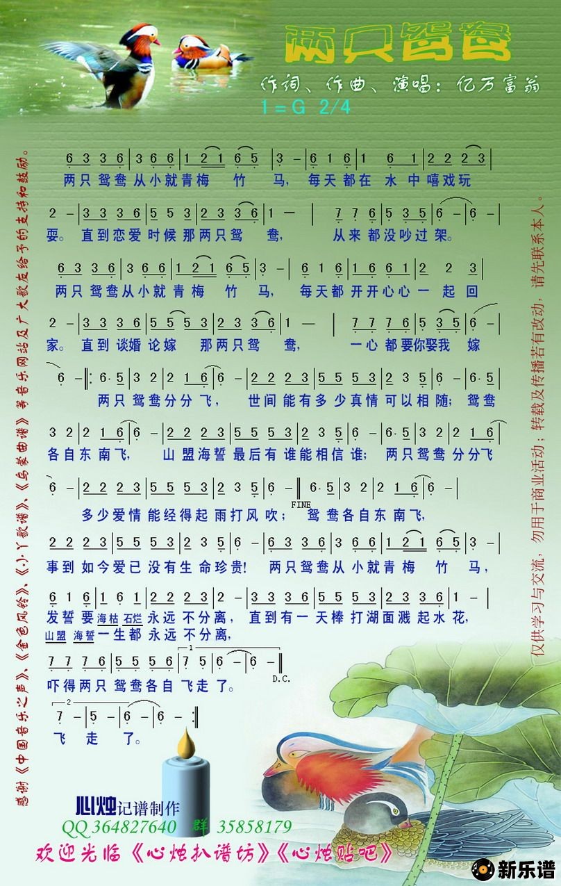 《两只鸳鸯》简谱 亿万富翁-心烛制谱
