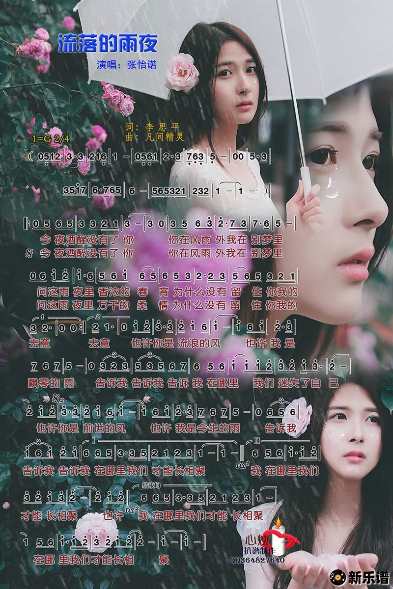 张怡诺演唱的流落的雨夜歌词,流落的雨夜简谱.