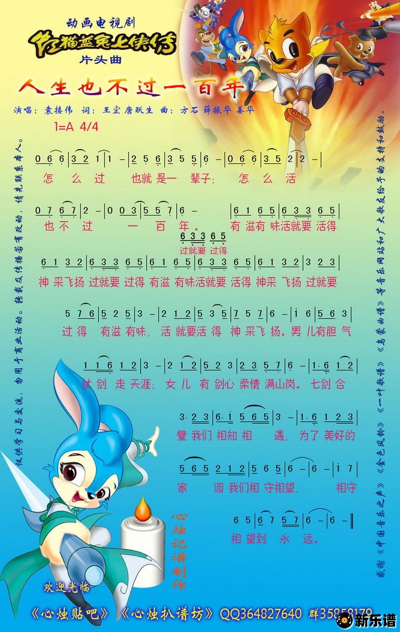《人生也不过一百年》简谱 袁接伟-心烛制谱