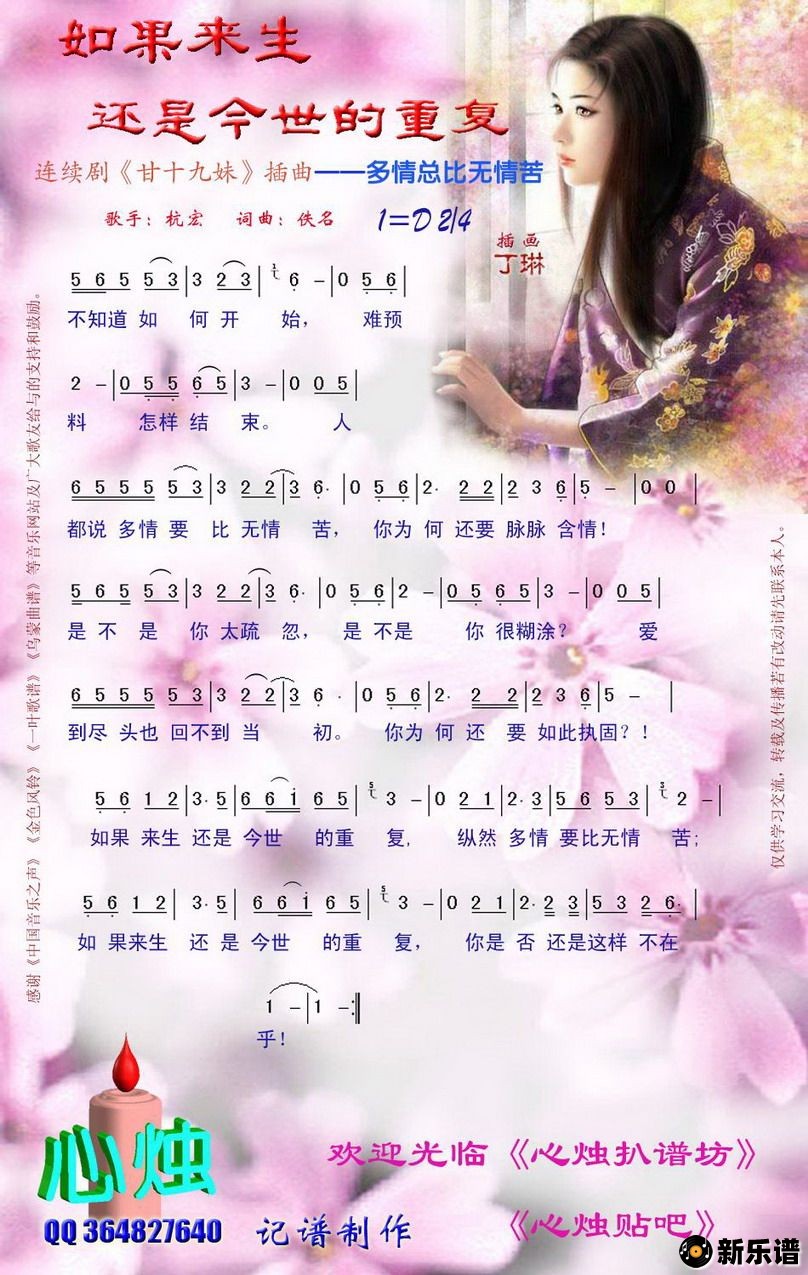 《如果来生还是今世的重复》简谱 杭宏-心烛制谱