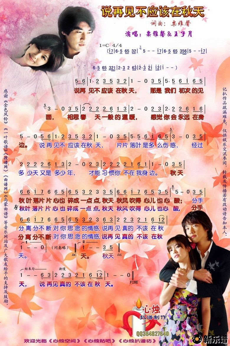 栗雅馨/王子月演唱的说再见不应在秋天歌词,说再见不应在秋天简谱.