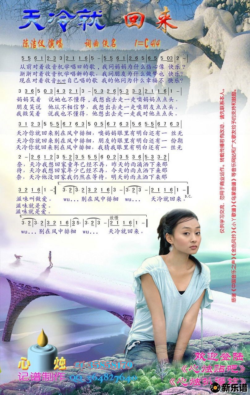 《天冷就回来》简谱 陈洁仪-心烛制谱