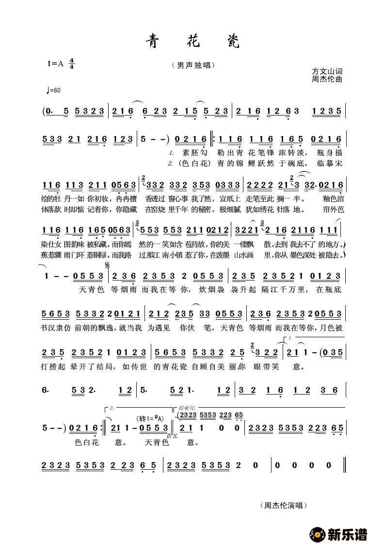 周杰伦演唱的青花瓷歌词,青花瓷简谱.