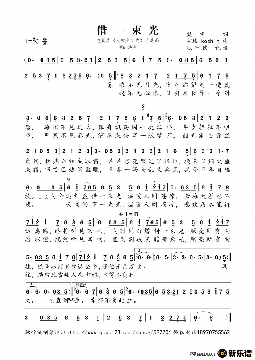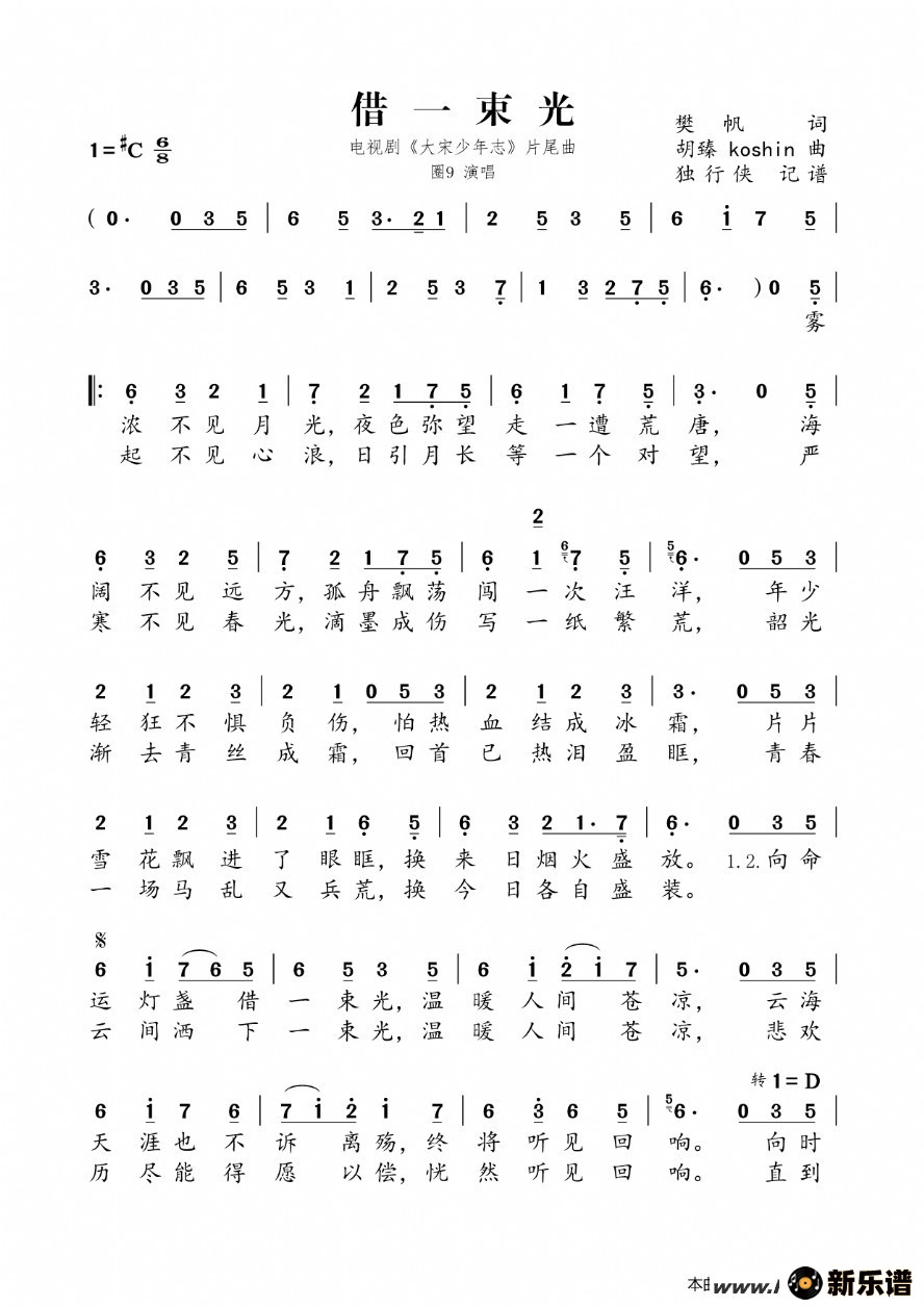 《借一束光(电视剧《大宋少年志》片尾曲 圈9 )》简谱 圈9-独行侠制谱