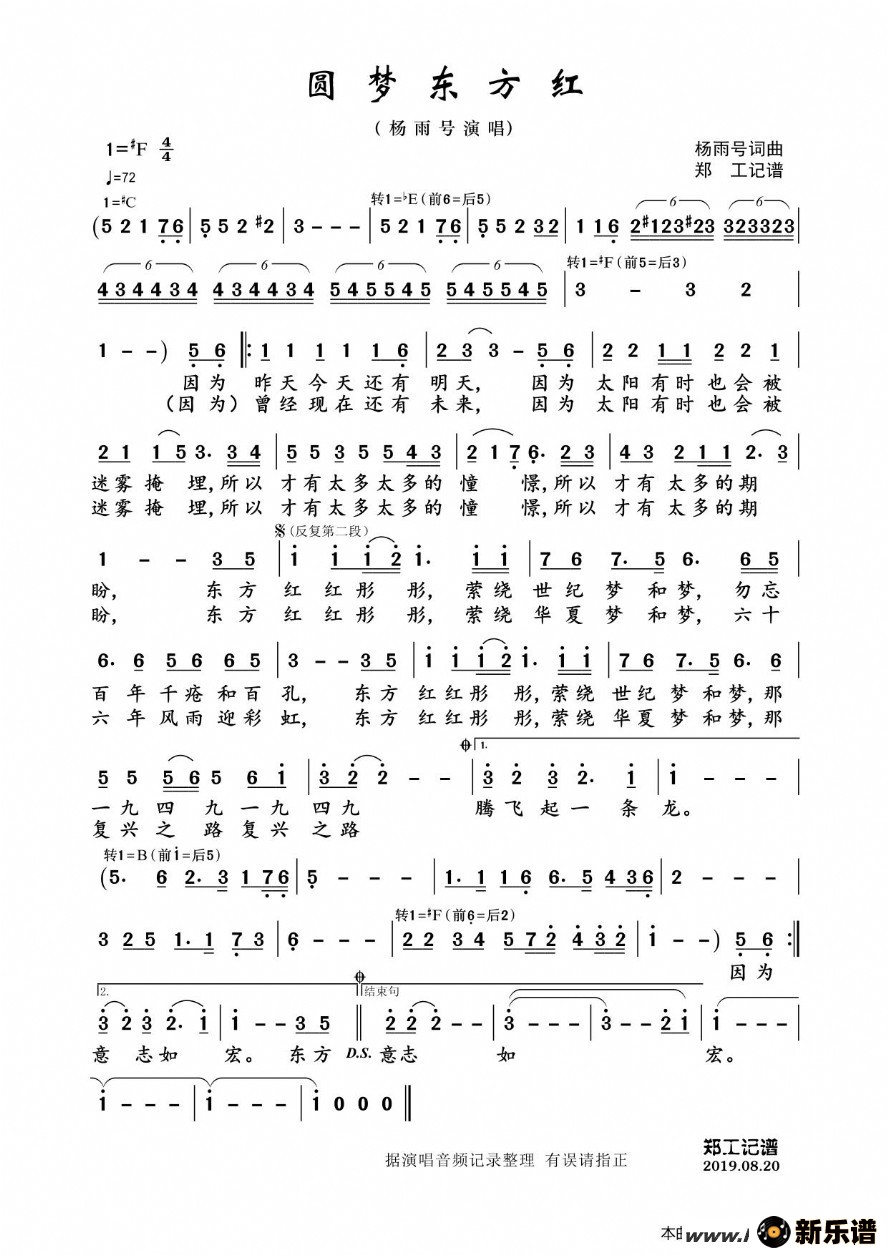 《圆梦东方红》简谱 杨雨号-郑工制谱