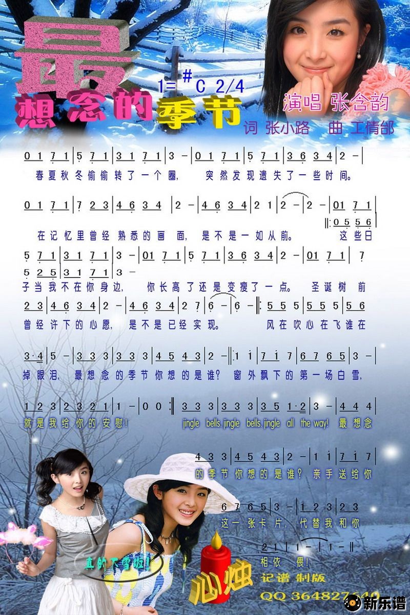张含韵演唱的最想念的季节歌词,最想念的季节简谱.