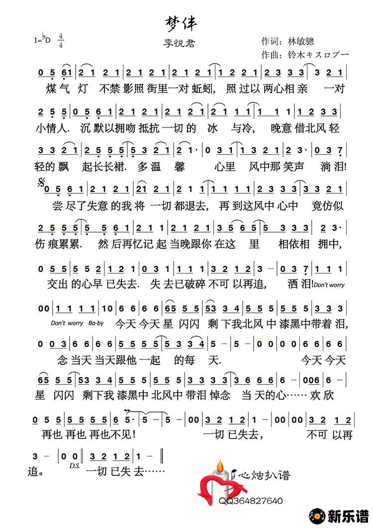 《梦伴》简谱 梅艳芳/李悦君-心烛制谱