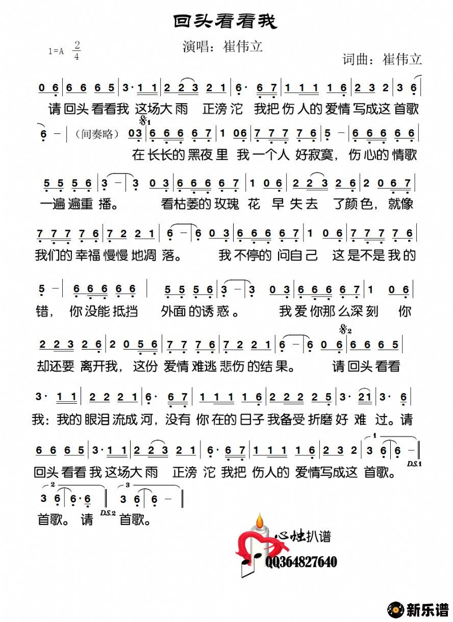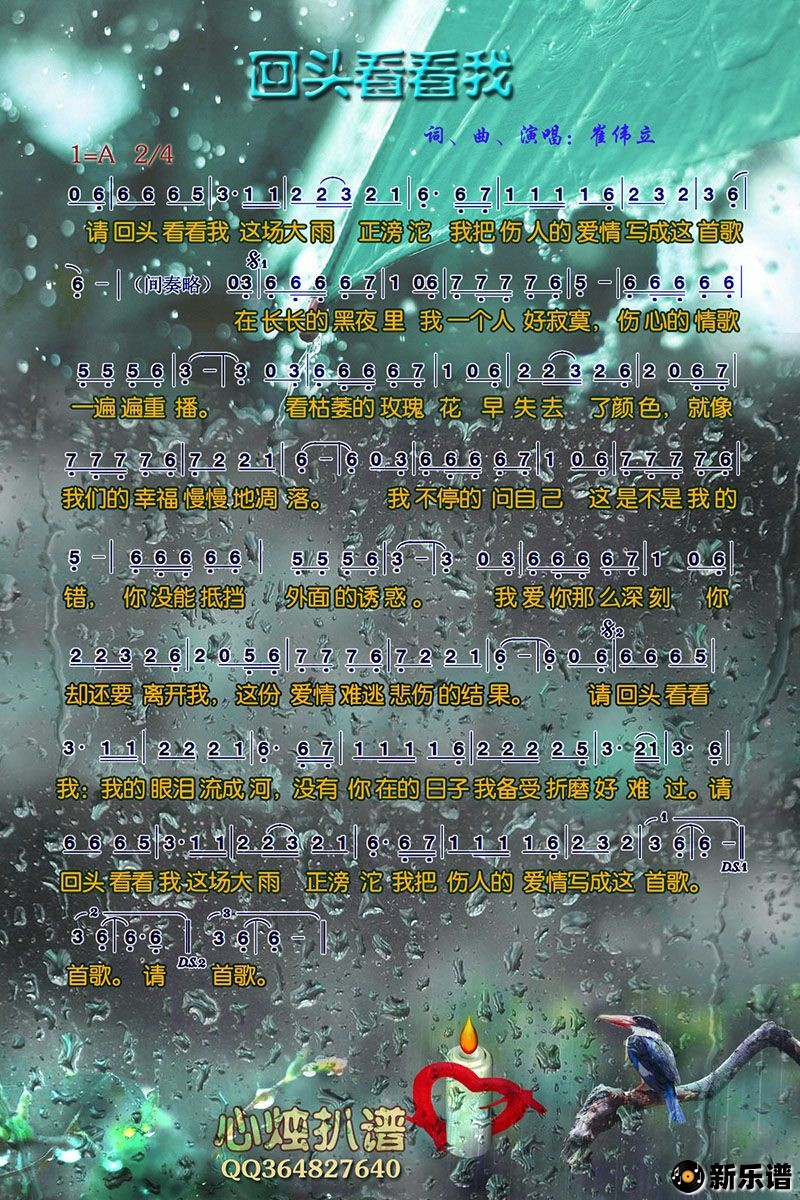 崔伟立演唱的回头看看我歌词,回头看看我简谱.