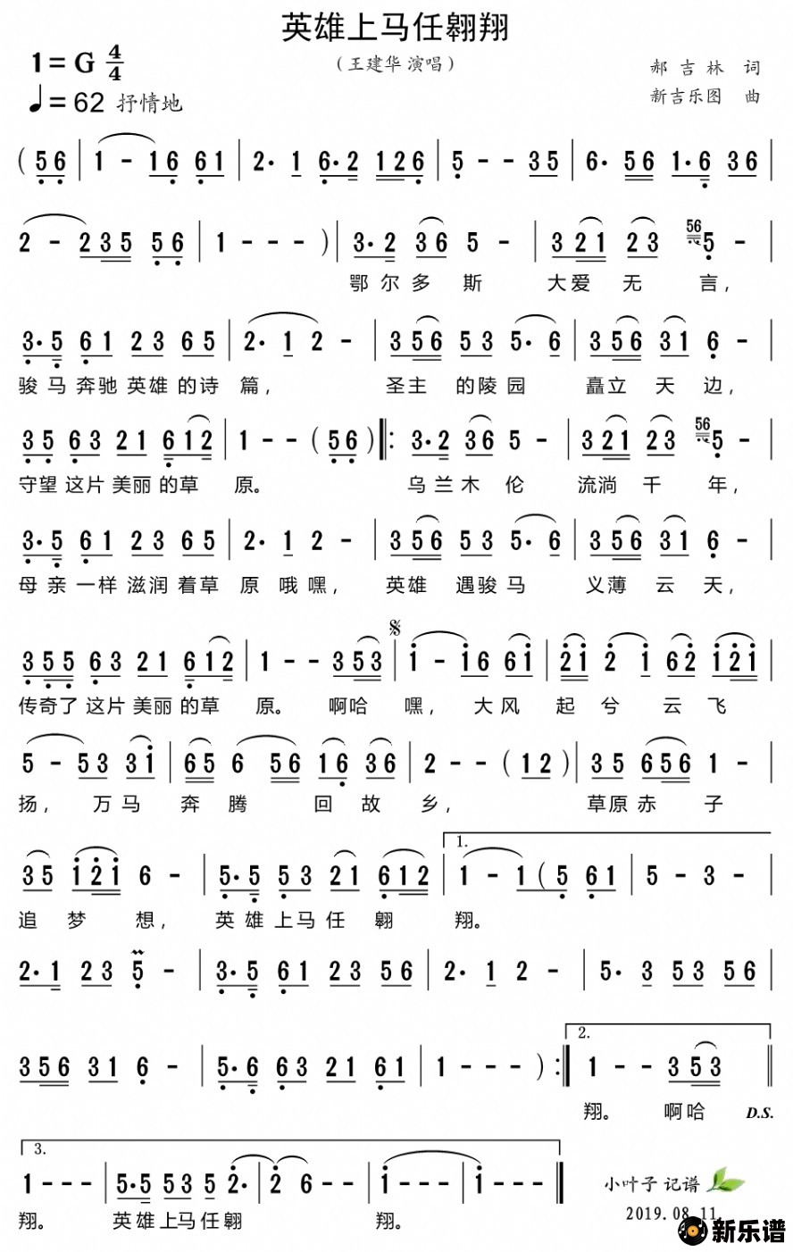 《英雄上马任翱翔》简谱 王建华-小叶子制谱