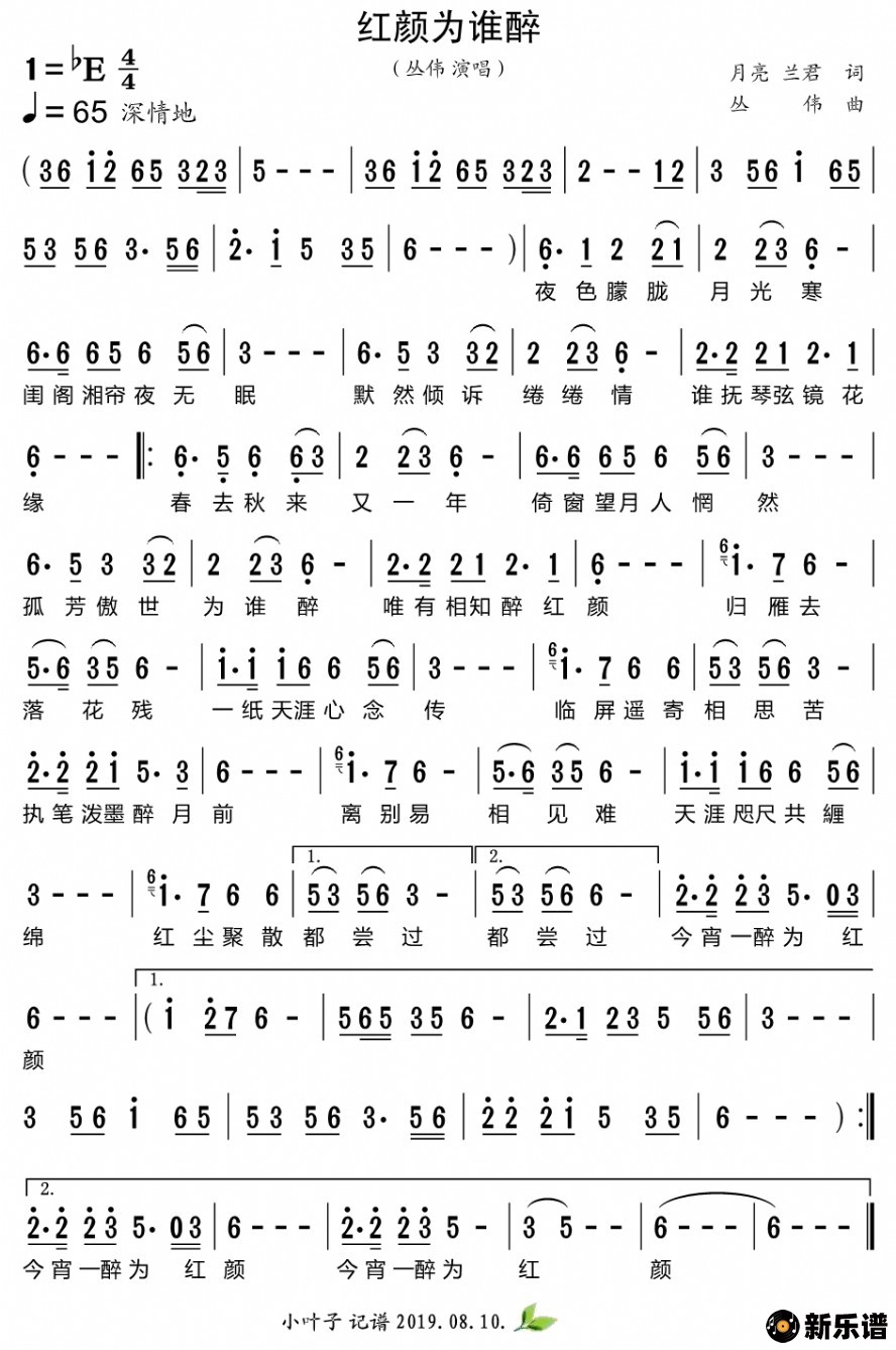《红颜为谁醉》简谱 丛伟-小叶子制谱