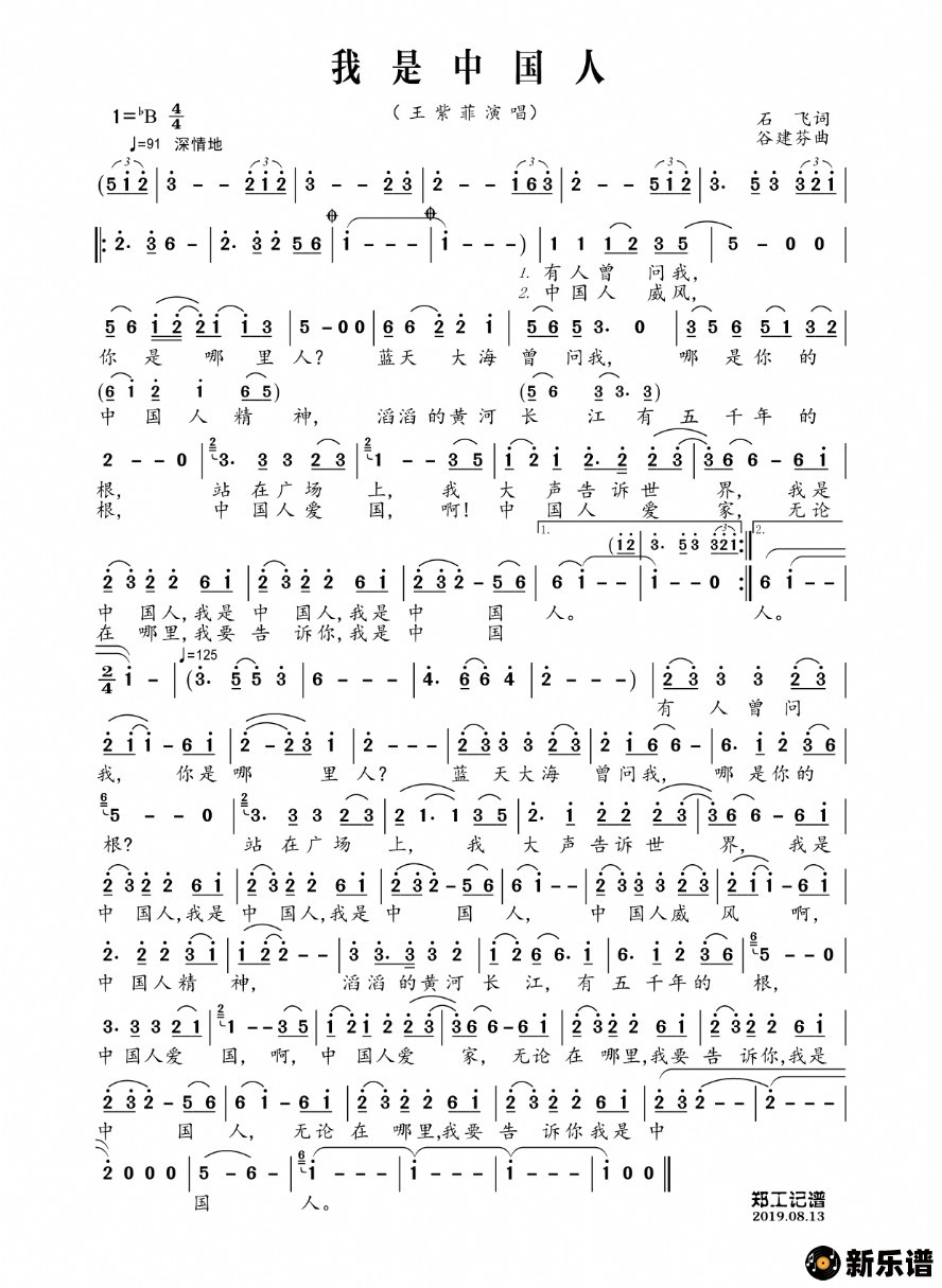 我是中国人最新曲谱