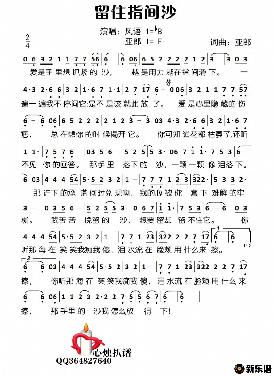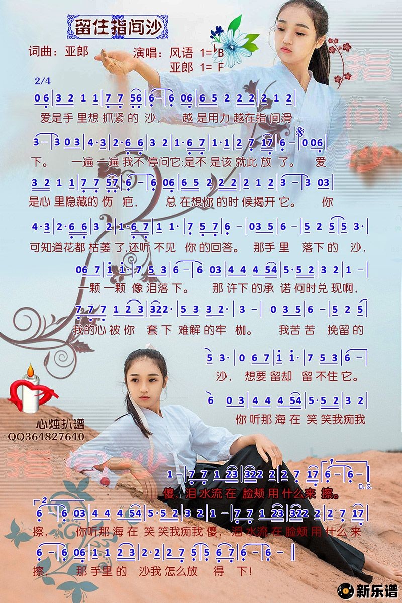 《留住指间沙》简谱 风语/亚郞-心烛制谱