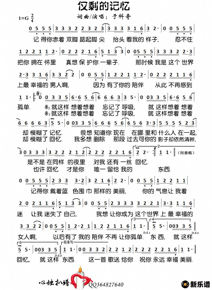 《仅剩的记忆》简谱 于科奇-心烛制谱