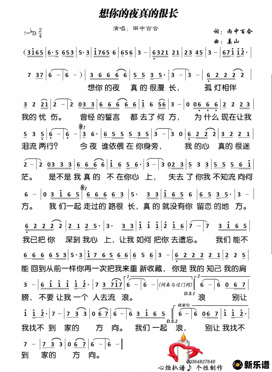 雨中百合演唱的想你的夜真的很长歌词,想你的夜真的很长简谱.