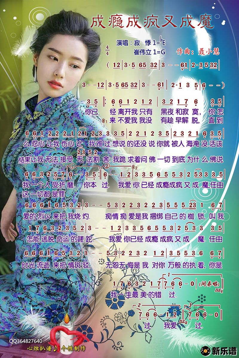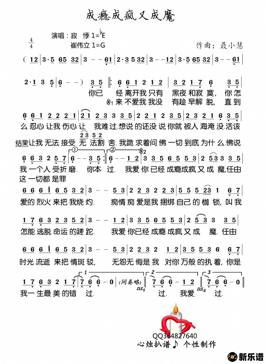 《成瘾成疯又成魔》简谱 寂悸、崔伟立-心烛制谱