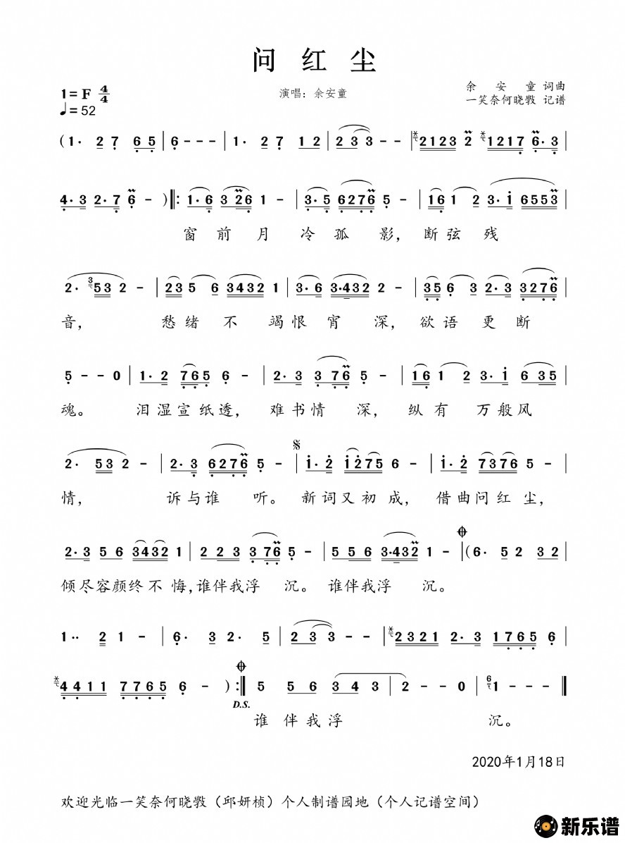 《问红尘(男版)》简谱 余安童-一笑奈何晓斅制谱