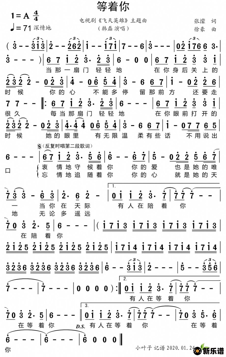 《等着你(电视剧《飞天英雄》主题曲)》简谱 韩磊-小叶子制谱