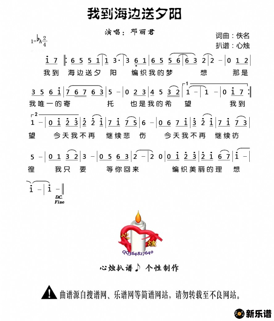 《我到海边送夕阳》简谱 邓丽君-心烛制谱
