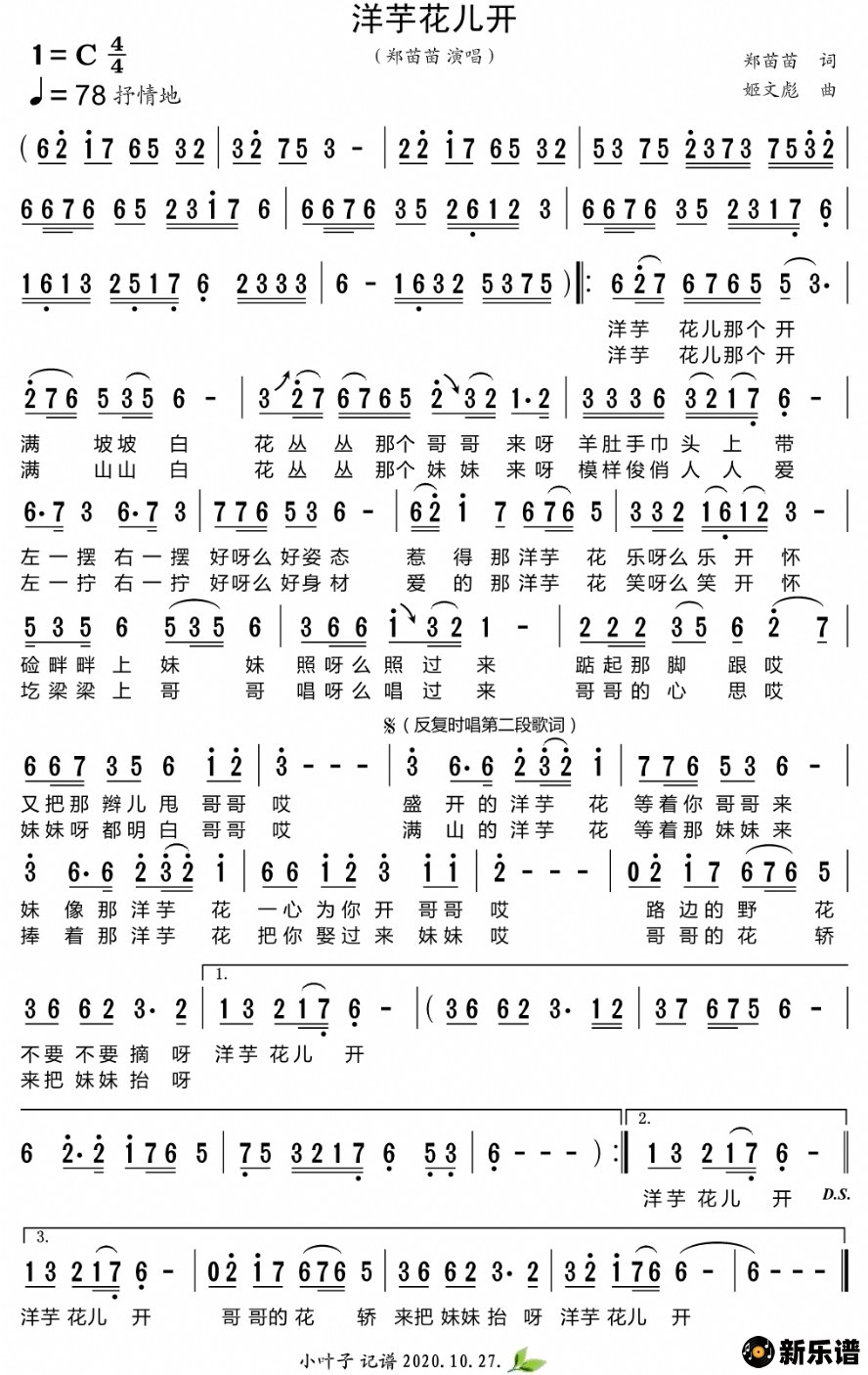 《洋芋花儿开》简谱 郑苗苗-小叶子制谱