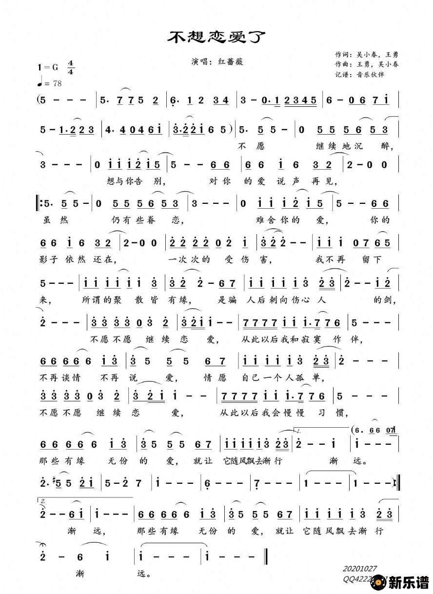 红蔷薇演唱的不想恋爱了歌词,不想恋爱了简谱.