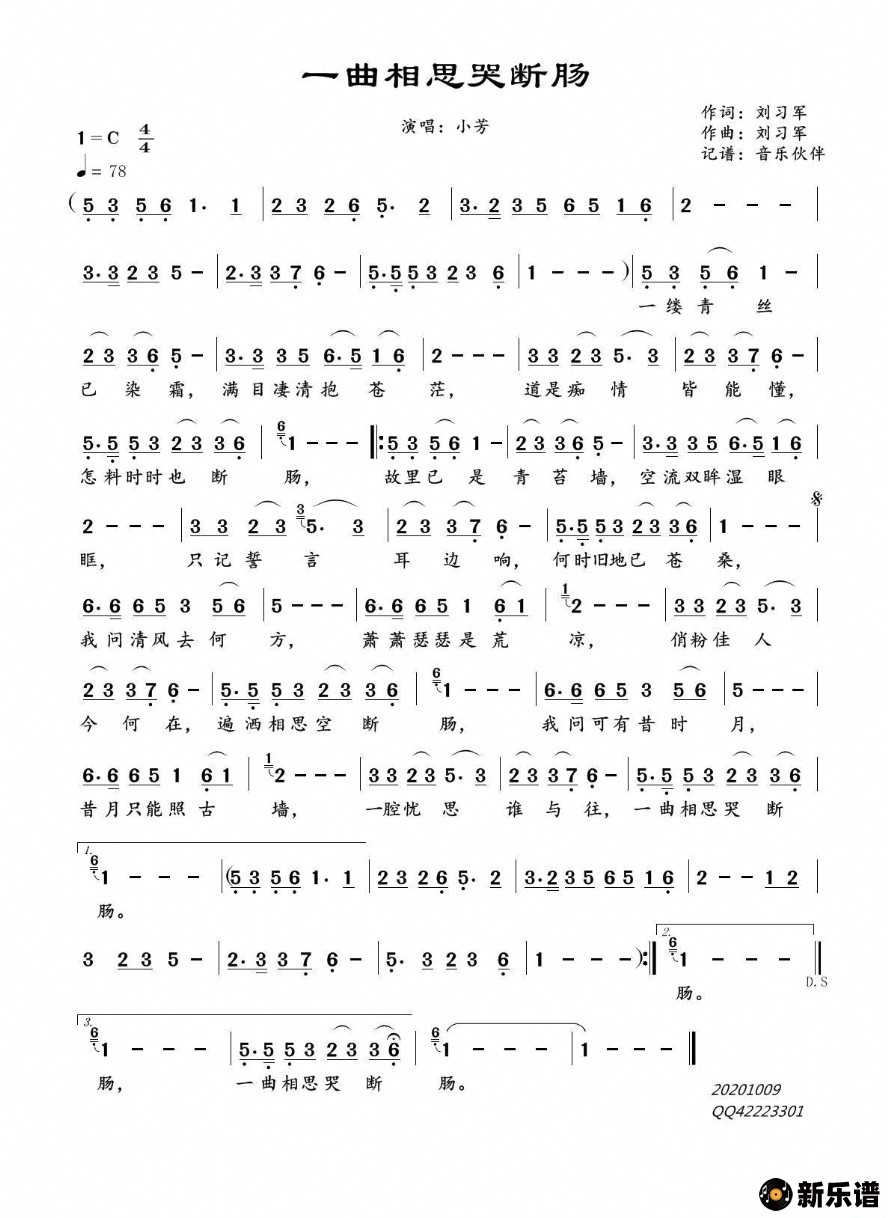 《一曲相思哭断肠》简谱 小芳-音乐伙伴制谱