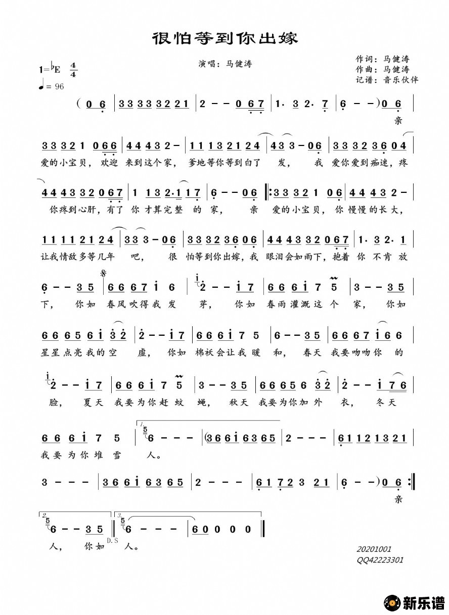 《很怕等到你出嫁》简谱 马健涛-音乐伙伴制谱