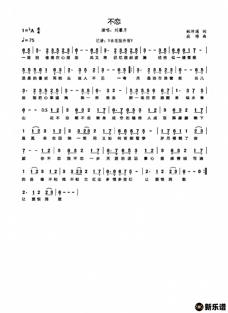 《不恋》简谱 刘馨月-杏花弦外雨制谱