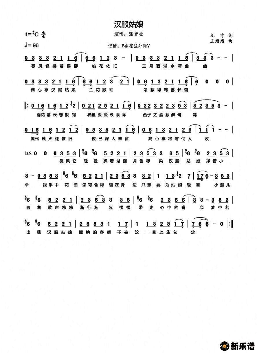 鸾音社演唱的汉服姑娘歌词,汉服姑娘简谱.