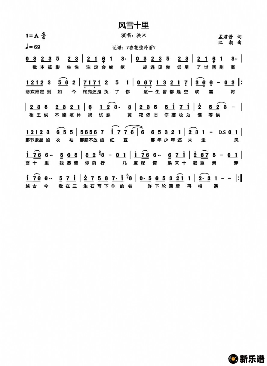 《风雪十里》简谱 涣米-杏花弦外雨制谱