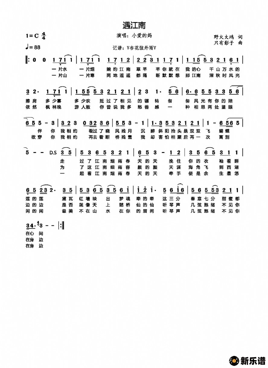 小爱的妈演唱的遇江南歌词,遇江南简谱.