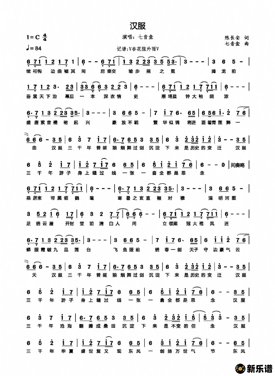 《汉服》简谱 七音盒-杏花弦外雨制谱