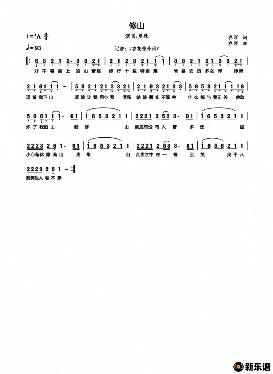 《修山》简谱 曼殊-杏花弦外雨制谱