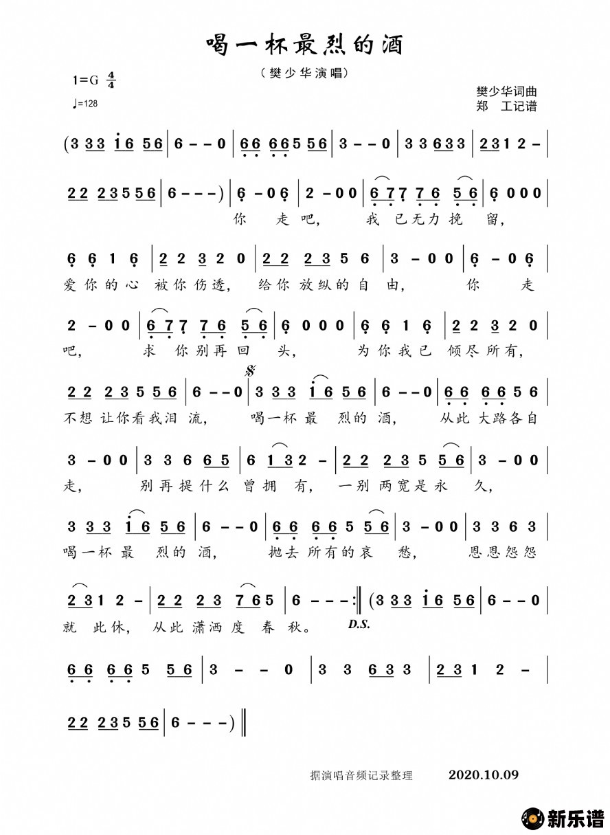 《喝一杯最烈的酒(dj何鹏版)》简谱 樊少华-郑工制谱