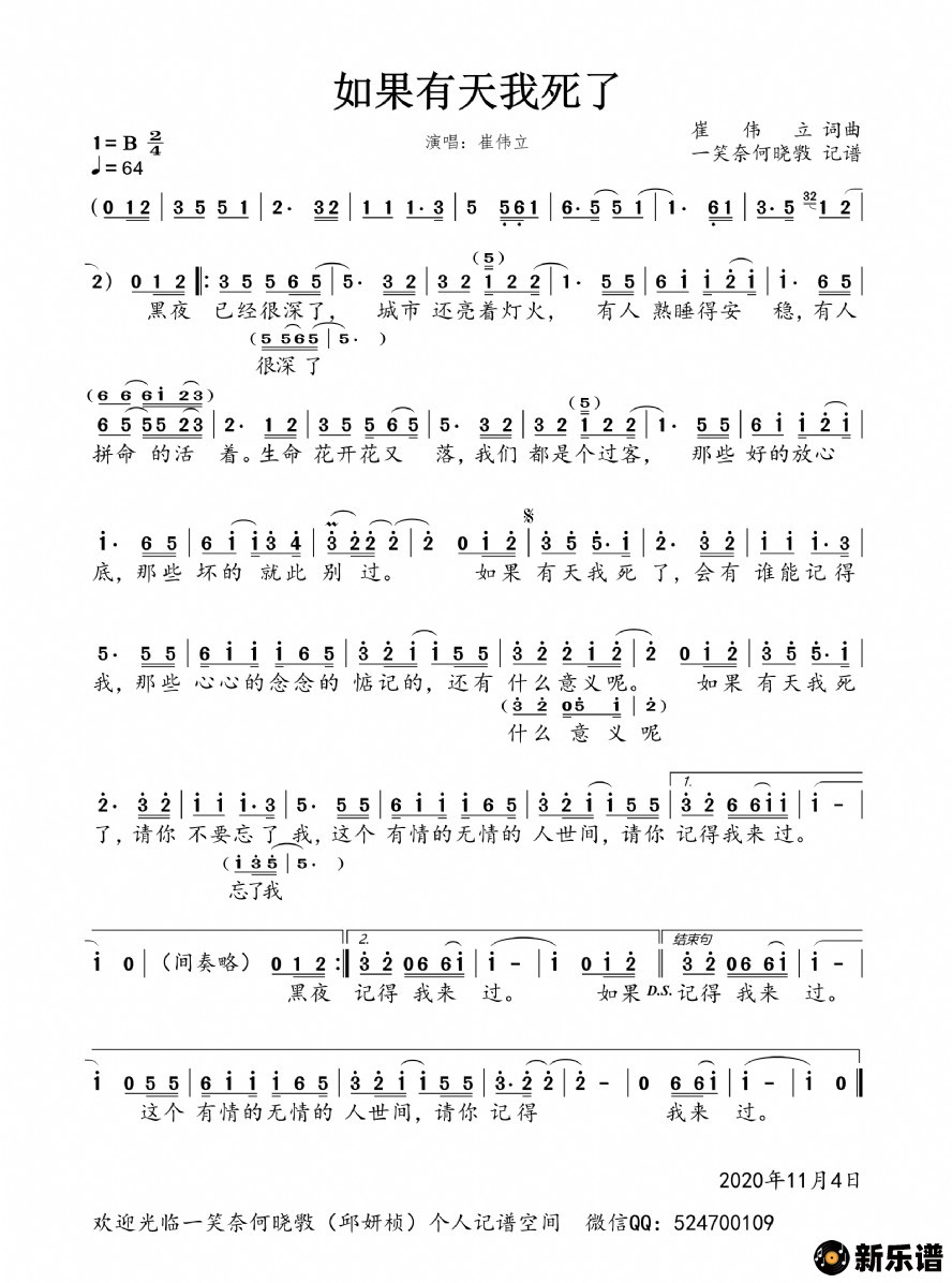 《如果有天我死了》简谱 崔伟立-一笑奈何晓斅制谱