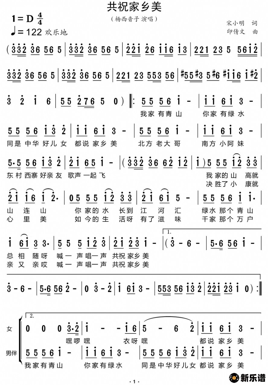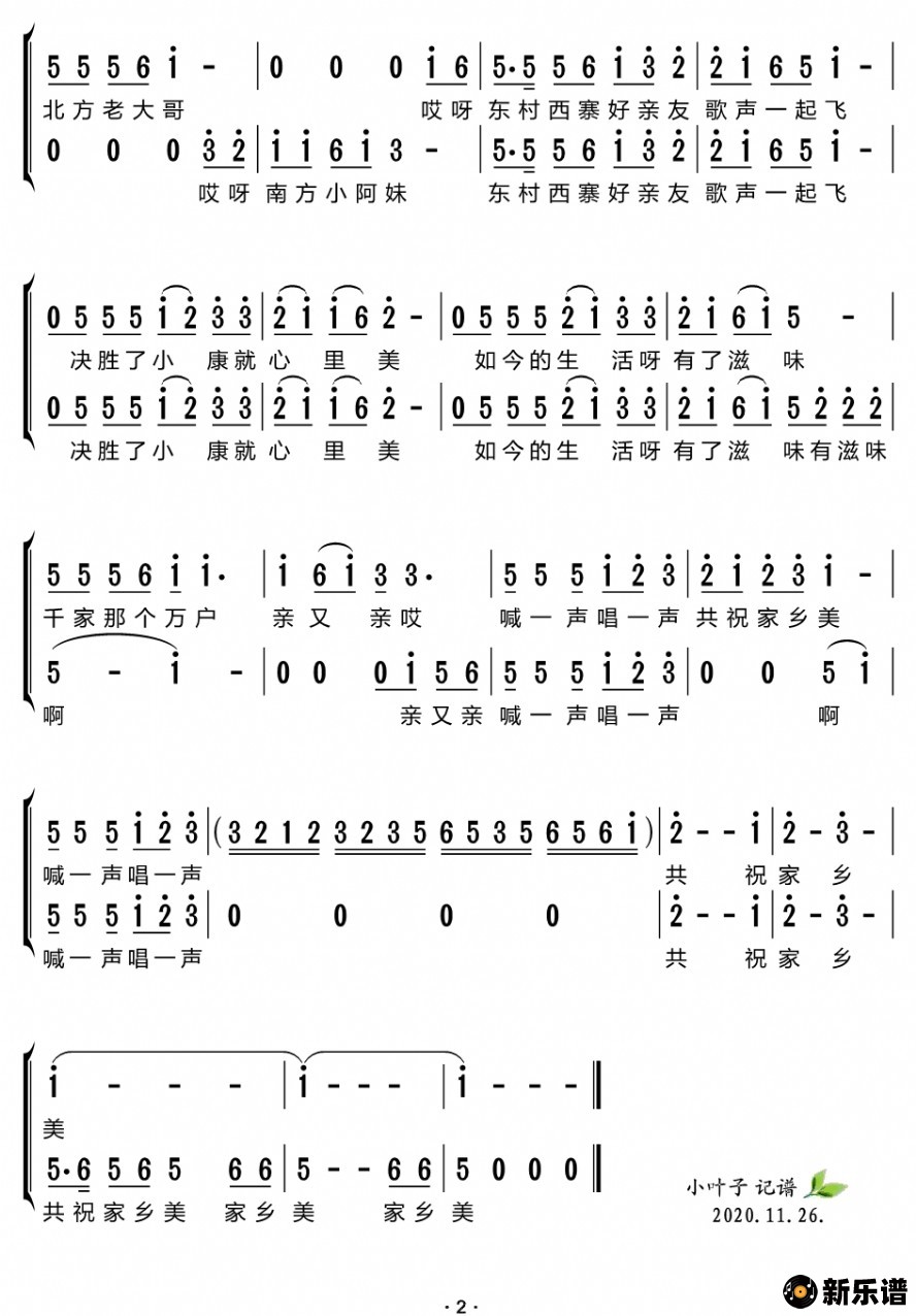 《共祝家乡美》简谱 杨西音子-小叶子制谱