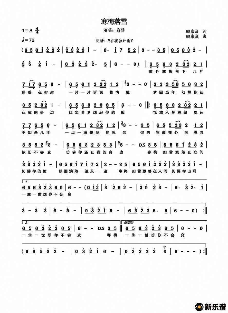 《寒梅落雪》简谱 寂悸-杏花弦外雨制谱