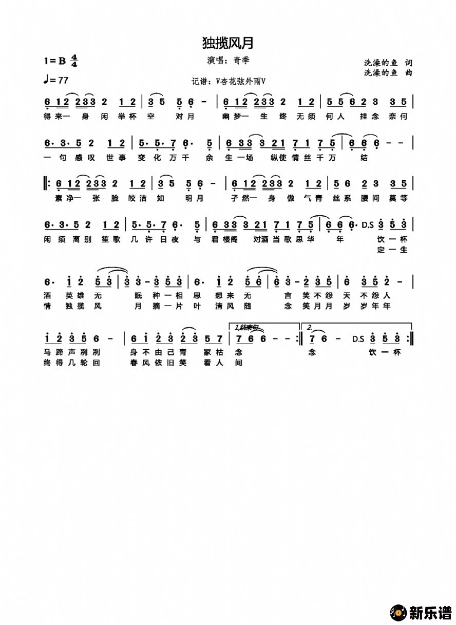 《独揽风月》简谱 奇季-杏花弦外雨制谱