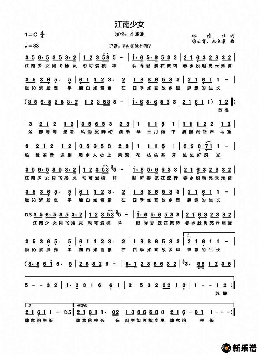 《江南少女》简谱 小潘潘-杏花弦外雨制谱