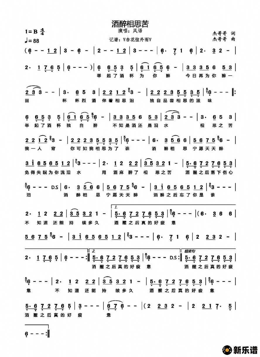 《酒醉相思苦》简谱 风语-杏花弦外雨制谱