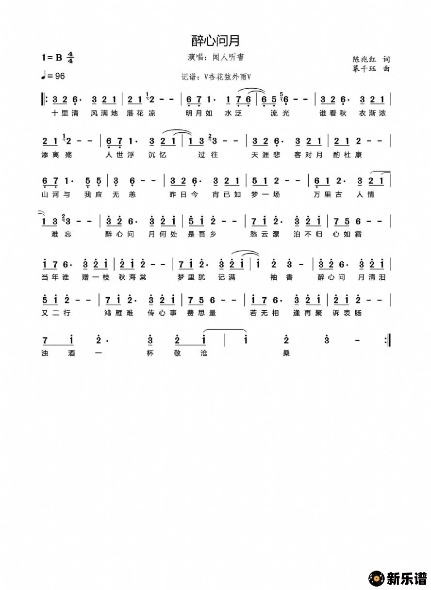 《醉心问月》简谱 闻人听書-杏花弦外雨制谱