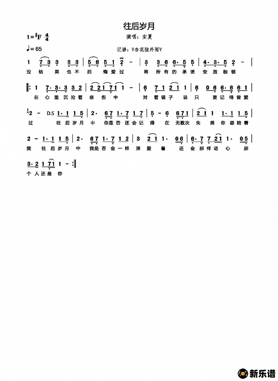 安夏演唱的往后岁月歌词,往后岁月简谱.