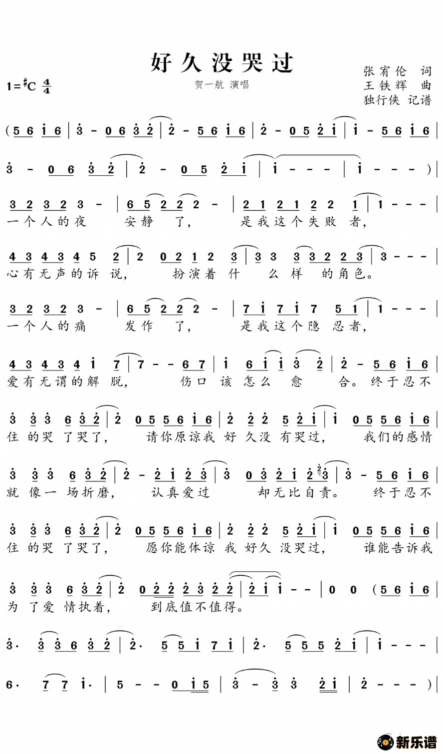 贺一航演唱的好久没哭过歌词,好久没哭过简谱.